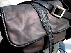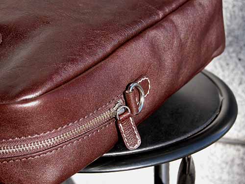 こだわりは、皮革生地に限らず、部材にもちりばめられています。ファスナーは、スイスのriri。金具類もハードな印象と、実際の強度を持つ工業用金具やオリジナルの金具を使用しています。